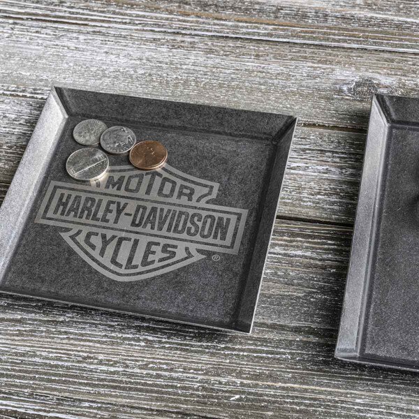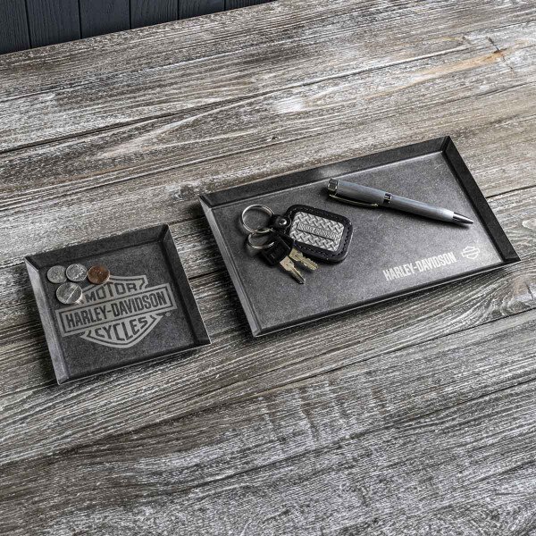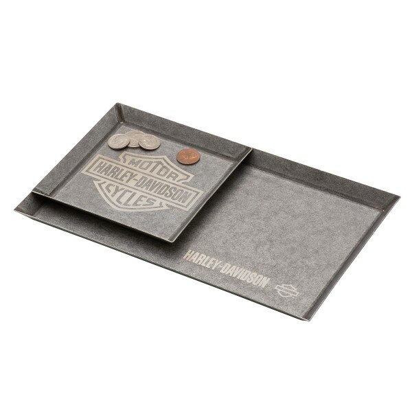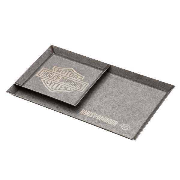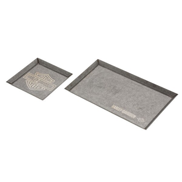 Pinit H-D B&S Metal Valet Tray Set - HDL-18631(0)No Reviews yet PART #: HDL-18631 U.S. Suggested Retail Price: $59.95 $59.95 Quantity discounts available QuantityPrice This item is IN STOCKCurrent Stock: 1593 Quantity -+ Add to Shopping Cart Details Set of two sand polished stainless steel trays with nickel plated finish. Features laser etched Harley-Davidson and Bar & Shield logos.Dimensions: Sma... Details Back DetailsSet of two sand polished stainless steel trays with nickel plated finish. Features laser etched Harley-Davidson and Bar & Shield logos.Dimensions: Small: 5” L x 5” W / 13 x 13 cm Large: 10” L x 6” W / 25 x 15 cm Reviews 0 Back Ratings & ReviewsNo reviews availableBe the first to Write a Review
